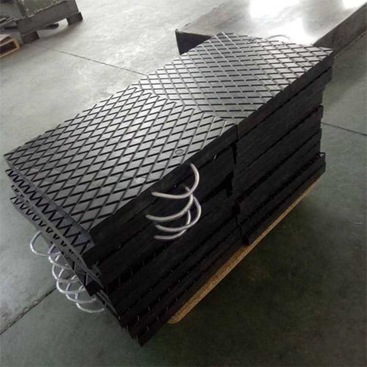 Crane stabilizer pads can prevent cranes and boom trucks from sliding and sinking on unstable surfaces, such as mud, swamp, sand, etc. The cushion block has light weight, good performance under heavy load, the ultimate working temperature is far more than 200 degrees, and has low friction coefficient and excellent impact strength.